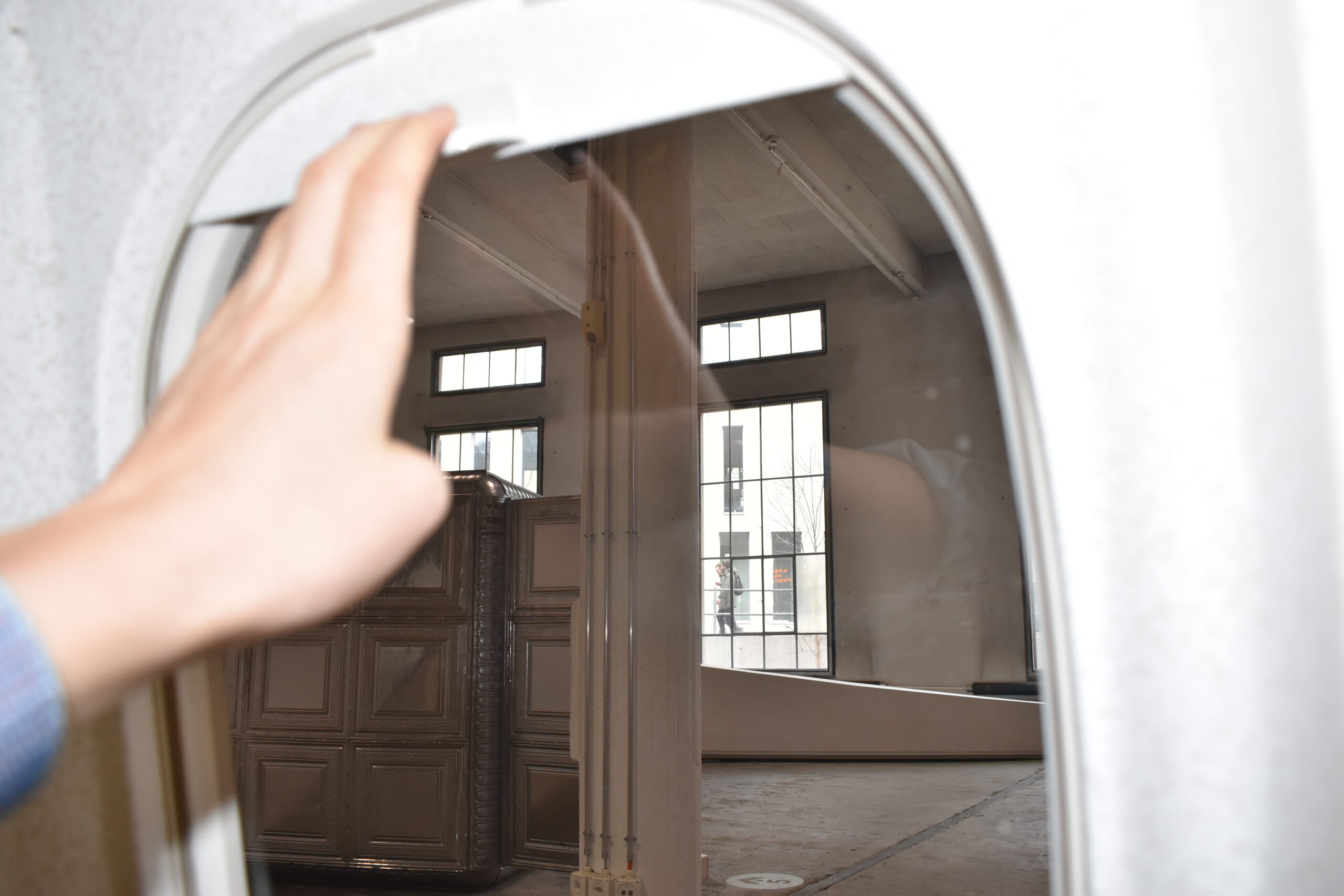 Nach meiner Nahtoderfahrung sehe ich ein Licht am Ende des „Tunnels“ von Sarah Masüger. „Es heisst jetzt Abschied nehmen.“ Neben mir steht Tobias und flüstert in mein rechtes Ohr. Ich folge seiner Wegbeschreibung raus aus dem Tunnel und zurück in die Wirklichkeit. Mein Museumsbegleiter verabschiedet sich und lässt mich in der Kunstzone der Lokremise stehen. Die Geräusche aus dem Kopfhörer verstummen. Ich ziehe sie ab. An der Kasse nimmt die Museumsangestellte meine Kopfhörer entgegen und desinfiziert sie wieder gründlich. „Ist ja klar, wegen der Läuse in der Matratzenzelle“, denke ich mir. Das Coronavirus habe ich für ganze 50 Minuten vergessen.