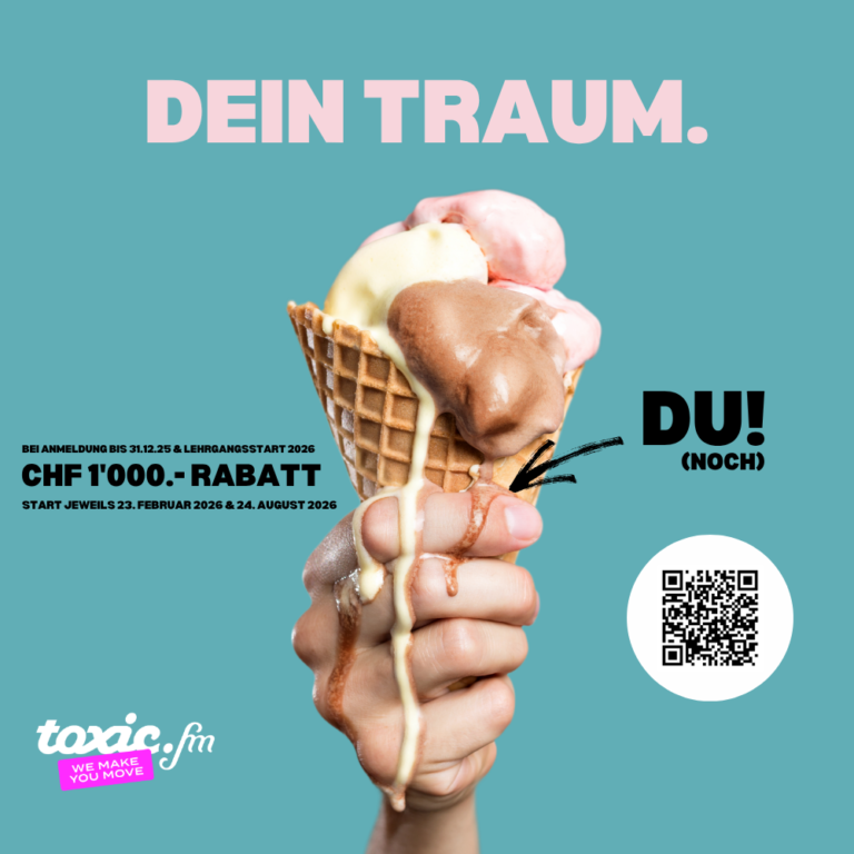 toxic.fm feiert Geburtstag und schenkt dir bis zum 31.12.25, CHF 1’000.00 auf deinen Lehrgang – bei Lehrgangsstart 2026 (Winter oder Sommer)!